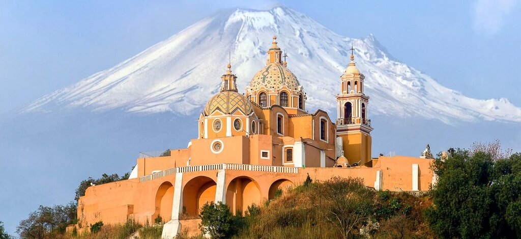 Auf steilen Rampen hinauf zum Cortez Pass auf über 3.700 m Höhe fahren wir durch den Vulkan-Nationalpark Popo-Iztaccihuatl. Du hast hoffentlich deine Kamera gestern Abend noch geladen, denn der herrliche Ausblick auf die beiden Vulkankegel Iztaccihuatl und Popocatepetl sind es wert für immer festgehalten zu werden. Nach einer kurzen Wanderung am Fuße des Iztaccihuatls Vulkans fahren wir auf Schotterstraßen ins »Pueblo Mágico« Cholula. Die hiesige Pyramide ist nach seinem Volumen die größte bekannte Pyramide der Welt. Viel davon erkennen kann man heutzutage nicht mehr, denn sie versteckt sich unter einer dicken Erdschicht. Doch das hält uns nicht ab ihren Geheimnissen auf den Grund zu gehen. In dem Labyrinth aus Tunneln der Pyramide könnte man sich glatt verlaufen. Doch unsere Reiseleitung kennt den Weg und führt uns sicher wieder hinaus und weiter bis nach Puebla.