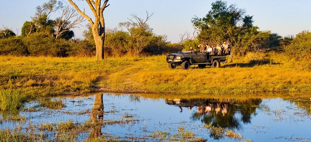 - 1 Safari im westlichen Bwabwata-NP; 4 Safaris im offenen Geländewagen: 1 im Chobe-NP, 1 im westlichen Bwabwata-NP und 2 im Moremi-Wildreservat; 6 Safaris per Boot: 1 im Chobe-NP, 1 im östlichen Bwabwata-NP, 3 auf dem Okavango und 1 im Moremi-Wildreservat; 1 Safari zu Fuß auf der Insel der Xaro Lodge