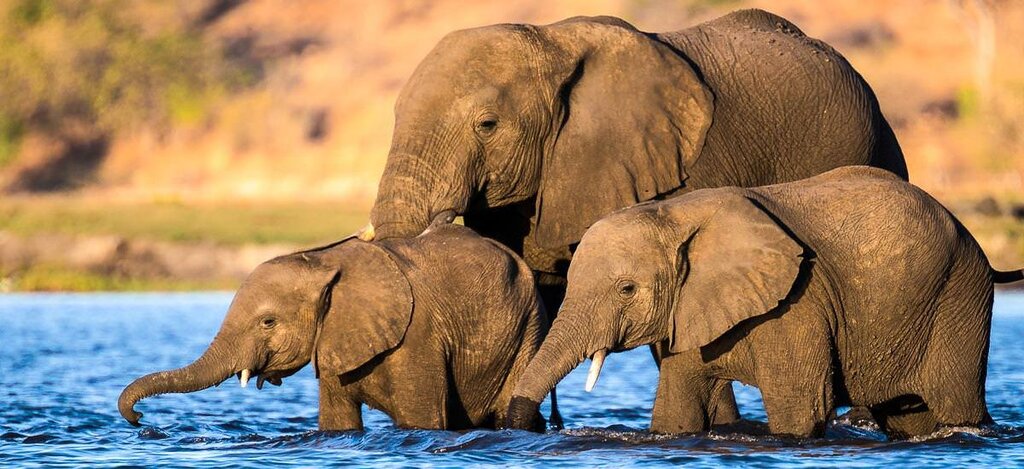 <Zeit für die erste Safari. Der Chobe-Nationalpark beherbergt die ganze Palette der afrikanischen Tierwelt. Auf einer Safari im offenen Geländewagen kommst du besonders den Tieren nahe, die nicht so häufig direkt an den Chobe-Fluss kommen. Gerade vormittags grasen die meisten Tiere, sodass die Möglichkeiten für Tierbeobachtungen an Land optimal sind. Löwen und andere Raubkatzen, die sich gern im Schatten der Büsche aufhalten, sind ebenfalls mit etwas Glück zu sehen. Mittags räkeln sich die Tiere faul im Schatten. Tue es ihnen am Pool deiner Lodge gleich. Für den Nachmittag steht eine ca. dreistündige Bootsfahrt auf dem Programm. Dank der offenen Flusslandschaft kannst du wahrscheinlich Elefanten, Flusspferde, Krokodile und auch eine Vielzahl von Antilopen entdecken, die sich am Chobe einfinden. Ein besonderes Schauspiel: wenn Elefanten ein Bad im Fluss nehmen, musikalisch begleitet von vielfältigem Vogelgesang und dem markanten Ruf des afrikanischen Schreiseeadlers.