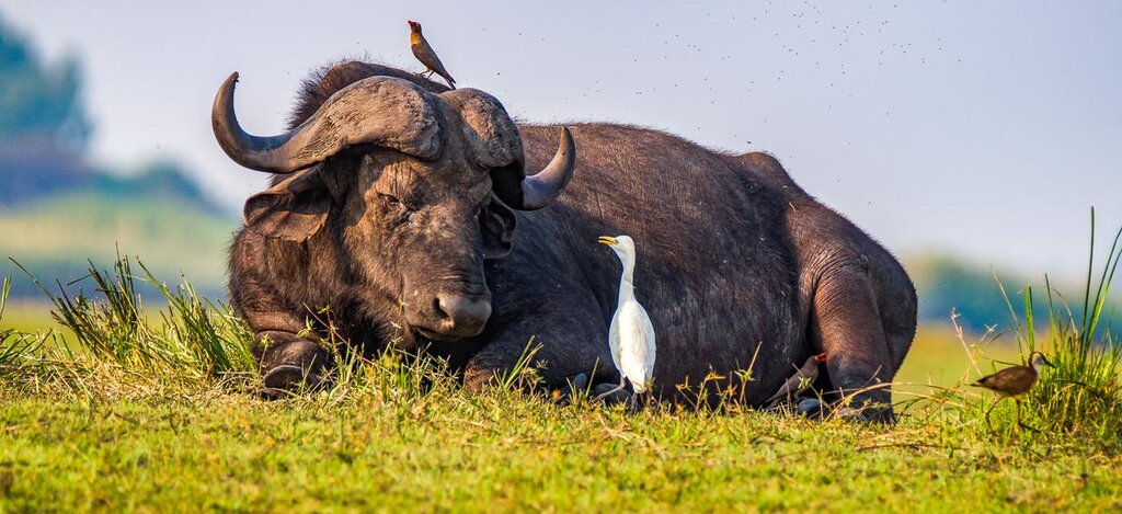 <Es wird Zeit für die erste Safari. Am frühen Morgen kommst du auf einer geführten Safari im offenen Geländewagen den Tieren besonders nahe, die nicht so häufig direkt an den Chobe-Fluss kommen. Gerade vormittags grasen die meisten Tiere, sodass die Möglichkeiten für Tierbeobachtungen an Land optimal sind. Löwen und andere Raubkatzen, die sich gern im Schatten der Büsche aufhalten, sind ebenfalls besser zu sehen. Mittags liegen die Tiere faul im Schatten. Du machst es ihnen nach, am besten am Pool deiner Lodge. Am späten Nachmittag steht eine ca. dreistündige Bootsfahrt auf dem Programm, auf der du mit großer Wahrscheinlichkeit Elefanten, Flusspferde, Krokodile und auch eine Vielzahl von Antilopen beobachten kannst, die sich am Chobe-Fluss einfinden. Immer wieder ist es ein ganz besonderes Erlebnis, wenn Elefanten ein Bad nehmen oder mal eben zum anderen Ufer schwimmen, dann guckt nur noch der Rüssel aus dem Wasser heraus. All das erlebst du mit der Begleitmusik großer und kleiner Vögel, unterstrichen vom markanten Ruf des Afrikanischen Schreiseeadlers.
