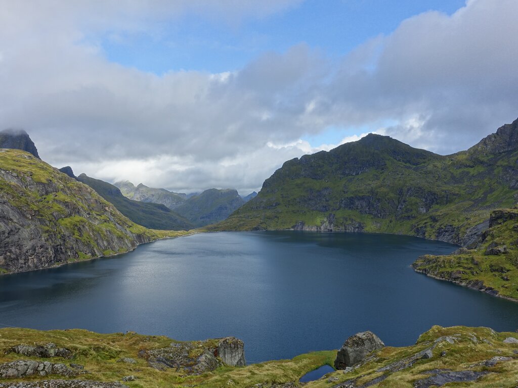 <In den folgenden 5 Tagen lernen Sie die Insel näher kennen. Sie unternehmen Tageswanderungen in die Berge der Umgebung. Entdecken Sie die spektakuläre Natur der Lofoten, die herrliche Aussicht über das Meer und die schroffe Bergwelt der Inselgruppe. Geplant sind Touren u.a. zum Kleppsteidheia (534 m), Tjeldbergtinden (367 m), Svartbergheia (423 m) und Glomtinden (412 m), alles sehr schön gelegene Gipfel, mit moderaten Anstiegen, aber herrlichen, unvergessenen Ausblicken. Am Abend genießen Sie Ihr Essen in unserem gemütlichen Ferienhaus oder beim Grillen auf der Terasse, können kurze Spaziergängen mit spektakulärer Aussicht auf die Berge ringsum das Ferienhaus unternehmen. Ein Besuch des interessanten Wikingermuseums in Borg, sowie Ausflüge nach Svolvear und ins hübsche Dörfchen Henningsvear stehen ebenfalls noch auf dem Programm.