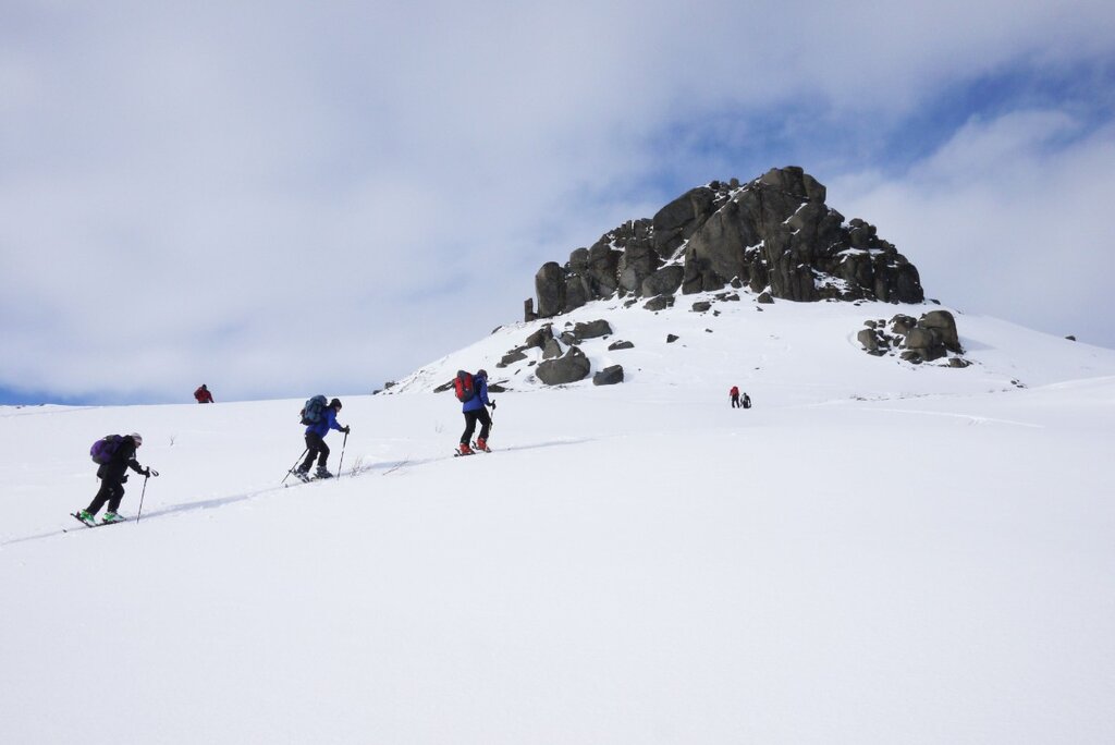 - Rucksack mit ca. 35-40 Liter Volumen (mit Befestigungsmöglichkeit für Tourenskier)