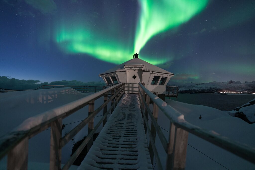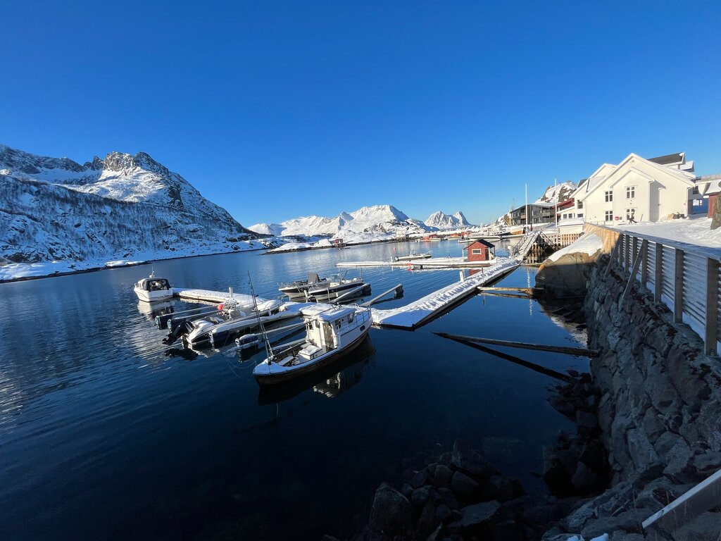 Hamn i Senja liegt in einem kleinen Fischerdorf, welches seine Ursprünge in den 1880er Jahren hatte. Wir wohnen in den Suiten mit getrenntem Schlafzimmer und eigenem Badezimmer. Jede Suite besitzt ein großzügiges Wohnzimmer mit Blick auf den Hafen. Im Restaurant von Hamn starten wir morgens mit einem reichhaltigen Frühstücksbuffet in den Tag. Für die Mittagsverpflegung (Lunchpaket) nimmt sich jeder was er möchte vom Buffet und bekommt natürlich warmen Tee für die Thermoskanne mit. Abends genießen wir ein sehr gutes 3-Gänge Menü. Wer möchte genießt nach den Touren den Hot Pot oder die Sauna (nicht im Reisepreis inbegriffen, Bezahlung vor Ort).