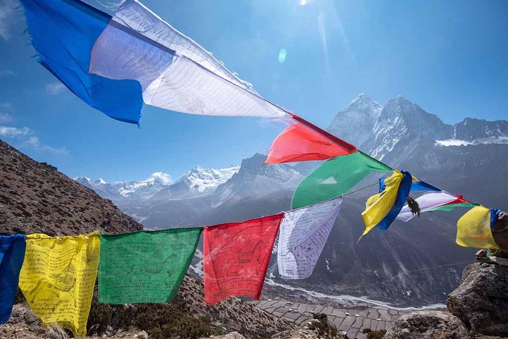 <Nicht viele Gruppen halten in Phortse - einem traditionellen Sherpa-Dorf, das einen Einblick in das Leben und die Kultur der Sherpa bietet - also wird der heutige Tag etwas Besonderes sein. Du verlässt Namche und schlängelst dich oberhalb des Tals, bis du kurz nach Sanasa die weniger befahrene Abzweigung nimmst. Die meisten Reisenden folgen dem gleichen Weg zum und vom Basislager, während du eine größere Schleife machst, um mehr vom Nationalpark zu sehen. Steig hinauf und genieße die atemberaubenden Ausblicke auf das darunter liegende Tal, bevor du auf etwa 4.000 m eine kleine Akklimatisierungspause einlegst. Nach dem Mittagessen geht es bergab, um den Dudh Koshi erneut zu überqueren, und dann geht es ein letztes Mal bergauf zu deinem Teehaus in Phortse. Die atemberaubende Aussicht auf die Berge und die Ruhe in diesem Dorf machen es zu einem der Höhepunkte des Trekkings. Hier befindest du dich fast vollständig oberhalb der Baumgrenze, so dass die Sonnenuntergänge für perfekte Fotos sorgen.