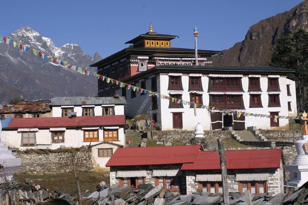 <Von Namche steigst du zur Landebahn in Shyanboche auf und fährst dann weiter zu einem Mittagsplatz in Khumjung, dem größten Dorf der Region. Hier kannst du dich mit Dhal Bhat, Nudeln und mehr stärken und nach dem Mittagessen das buddhistische Khumjung-Kloster besuchen. Über Khumjung erhebt sich der heilige Felsgipfel Khumbilya (5761 m). Er ist die Heimat der Schutzgöttin der Region, die auf religiösen Gemälden (oder Thangkas) oft als weißgesichtige Gestalt auf einem weißen Pferd dargestellt wird. Der Weg schlängelt sich um die unteren Hänge von Khumbilya, führt durch einen wunderschönen Birkenwald und steigt dann von baumlosen, grasbewachsenen Hängen zu einer Stupa auf einem felsigen Bergrücken (3992 m) auf. Auch hier sind die Ausblicke auf die umliegenden Berge großartig. Auf der anderen Seite des Tals ist Phortse zu sehen - ein malerisches Dorf, das in einem Flickenteppich aus mit Steinmauern umgebenen Feldern liegt. Du übernachtest in einer Gruppe von Lodges am Sattel, die als Mongla bekannt sind.