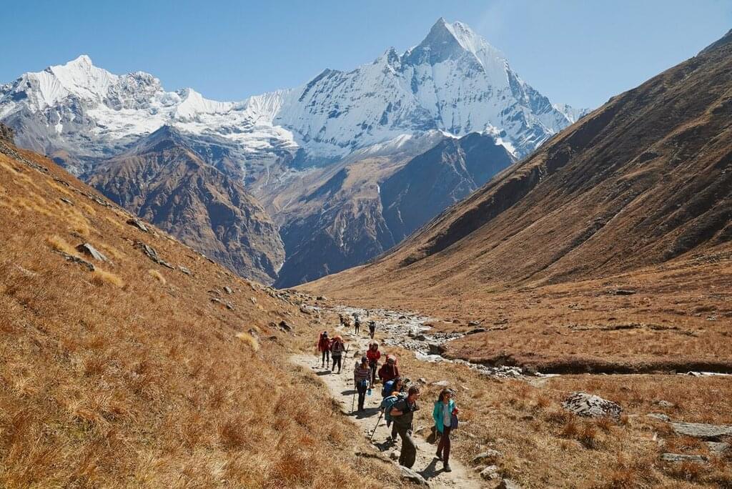 Entdecke das Annapurna-Gebirge bei diesem fünftägigen Wanderabenteuer in Nepal. Unterstützt von erfahrenen Führern, Hilfsführern und Trägern wanderst du durch die abwechslungsreiche Landschaft Nepals auf Pfaden, die dich durch Ackerland, Wasserfälle und kleine Dörfer führen. Besuche einen Teil der einst blühenden Handelsroute zwischen Indien und Tibet, nimm ein Bad in den natürlichen heißen Quellen und beobachte den Sonnenaufgang über dem hohen Himalaya auf deiner frühmorgendlichen Wanderung zum Poon Hill. Du übernachtest in Berggemeinden, triffst die gastfreundliche nepalesische Bevölkerung und tauchst unterwegs in die reichen Traditionen der lokalen Dörfer und die Sherpa-Kultur ein.