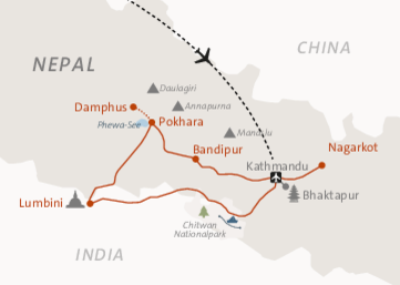 <Wir landen in Kathmandu, werden am Flughafen herzlich begrüßt und fahren in den nahe gelegenen Bergort Nagarkot. Von hier aus können wir an klaren Tagen die strahlend weißen Himalayariesen Manaslu, Ganesh Himal, Langtang und einige andere Sechs- und Siebentausender erblicken.