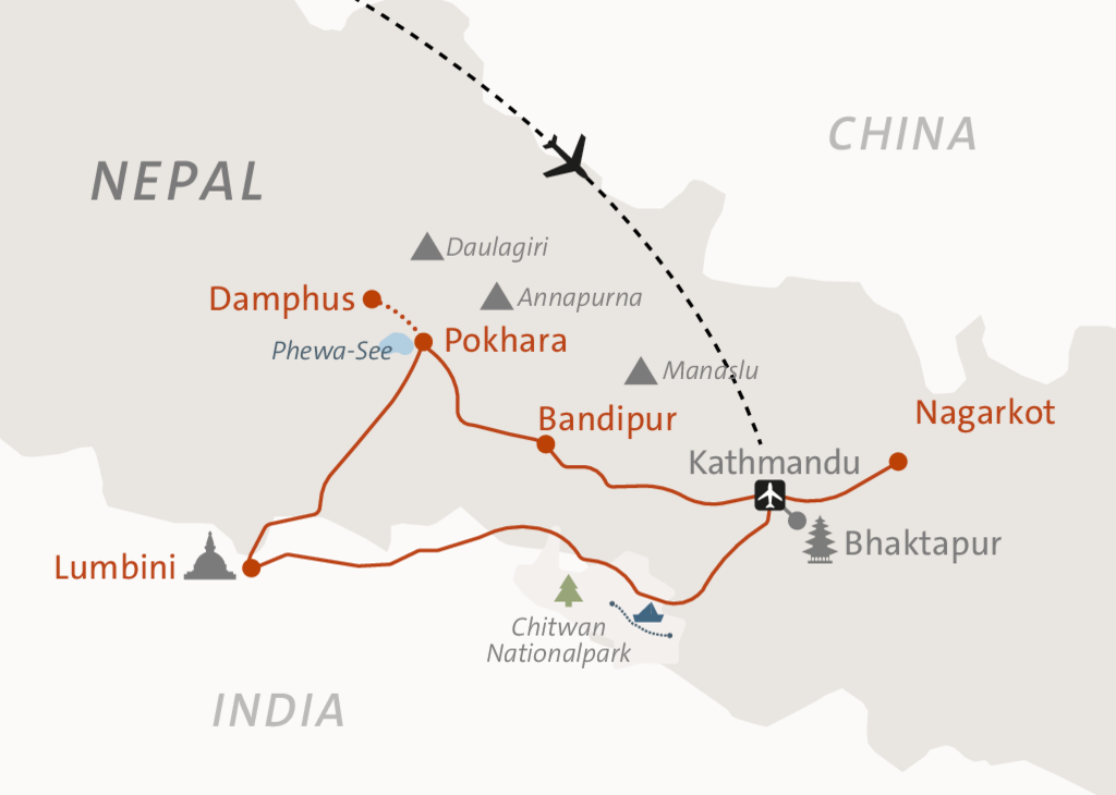 Nepal ist ein Land voller Kontraste: majestätische Himalaya-Gipfel, jahrtausendealte Kultur und eine faszinierende Tierwelt. Unsere Reise führt uns zunächst ins Kathmandutal, wo wir auf leichten Wanderungen durch malerische Dörfer und über Terrassenfelder zu Aussichtspunkten gelangen, die weite Panoramen über die Bergwelt eröffnen. Danach geht es nach Pokhara, idyllisch am Phewa-See gelegen und berühmt für das überwältigende Panorama auf die Annapurna-Kette. Ein Höhepunkt ist der Chitwan-Nationalpark: Auf Pirschfahrten, Flussfahrten im Einbaum und geführten Wanderungen entdecken wir die Vielfalt des Dschungels – mit Elefanten, Panzernashörnern, Krokodilen, Hirschen und unzähligen Vogelarten. Den Abschluss bildet Kathmandu, wo wir in die lebendige Atmosphäre der Hauptstadt eintauchen und prächtige Tempel, Stupas und Paläste erleben.