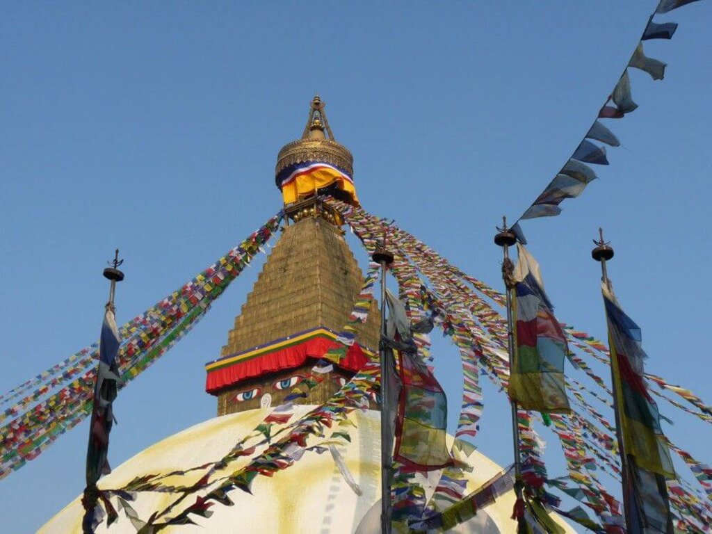 <Am Vormittag wandern wir durch die grüne Hügellandschaft des Kathmandutales, immer wieder kommen wir an Bauernhföfen vorbei und gewinnen einen Eindruck der täglichen Arbeit der hier ansässigen Bauern. Unser Ziel ist das aussichtsreich gelegene Kloster Namobuddha. Hier flattern tausende Gebetsfahnen im Wind, zusammen mit der Himalayakette am Horizont bilden sie eine eindrucksvolle Kulisse. Bei einer Klosterbesichtigung erhalten Einblicke in das Klosterleben. Anschließend geht es wieder zurück nach Dhulikel.