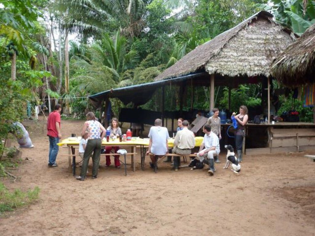 <Am Morgen brechen wir nach Shintuya auf, einem Dorf der Matsiguenka-Indianer. Wir besuchen hier die örtliche Schule, wo wir Gelegenheit haben, mit den Oberschülern über deren Leben im Dschungel und deren Zukunftspläne zu sprechen.