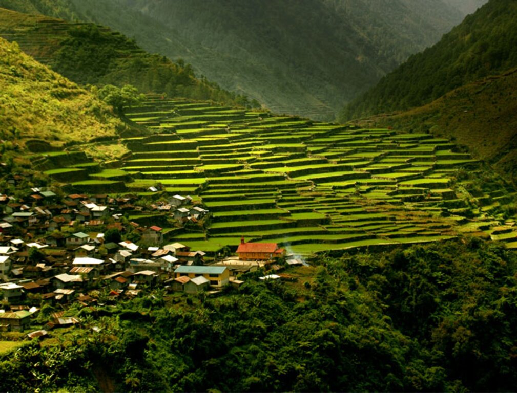 <Leave you main luggage in Banaue and pack a daypack with your necessities for the next few days, then drive 40 minutes to the start of the trek. Over the next 3 days and 2 nights, you’ll hike through rice fields, forest and villages, staying overnight in local Ifugao villages where people farm rice the way their ancestors did 2,000 years ago. On this first day of the trek, you’ll walk for approximately 4 hours on a mixture of up and down, but mostly flat terrain. Start from Kinakin and we take a short drive up a paved road to get to our start of the trail. The next 3 hours will be on a rather flat path, and the last hour includes steps down to the guesthouse in Cambulo. There will be plenty of stops along the way, including for lunch, so keep your camera handy for those scenic photos – the rice terraces here are characterised by their pyramid-like appearance, cut almost 360 degrees around the mountains. When you finish today’s hike, you can take a refreshing swim in the river 2 minutes walk from the guesthouse – a welcome relief from a physically demanding day! You’ll spend the night in isolated Cambulo Village – the guesthouse has multi shared rooms, shared bathroom with Asian style toilets. Cold water is expected with scoop showers. Notes: The rice terraces in this region are very steep, which means at times you’ll be trekking on very narrow paths with steep drops on either side. A very good level of balance is required for this trekking. Your leader can assist you, providing a walking stick to help you keep balance over these sections. Accommodation is in basic village guesthouses with shared facilities and cold water for bathing. Bedding will be provided, but you may like to bring your own sleeping sheet and a warm layer for cool nights (especially during January and February). Meals are provided at the guesthouses – simple dishes like stewed vegetables for dinner, and omelette or pancakes for breakfast. Basic hot drinks are also available. -