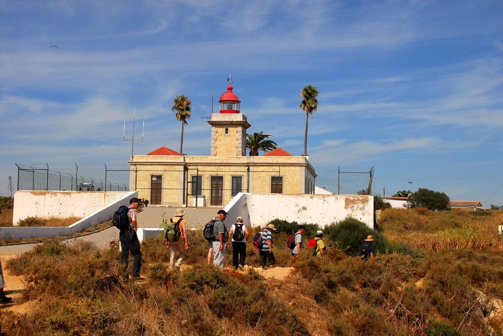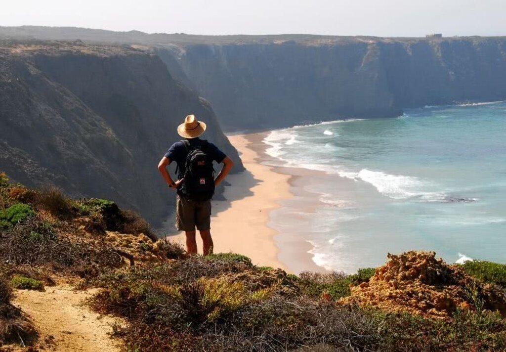 <Unsere heutige Etappe folgt dem Fischerpfad der Rota Vicentina und zeigt uns die Westküste in ihrer wildesten Schönheit. Von Arrifana wandern wir durch Dünen, Heidekraut und blühende Wiesen. Der Atlantik begleitet uns – mal glitzernd und still, mal donnernd gegen die schwarzen Klippen. Am Strand von Monte Clérigo endet die Hauptroute mit einem ausgedehnten Mittagessen. Wer mag, setzt den Weg fort: Ein kurzer Abschnitt führt bis Amoreira, wo Fluss und Meer in magischer Szenerie zusammentreffen.