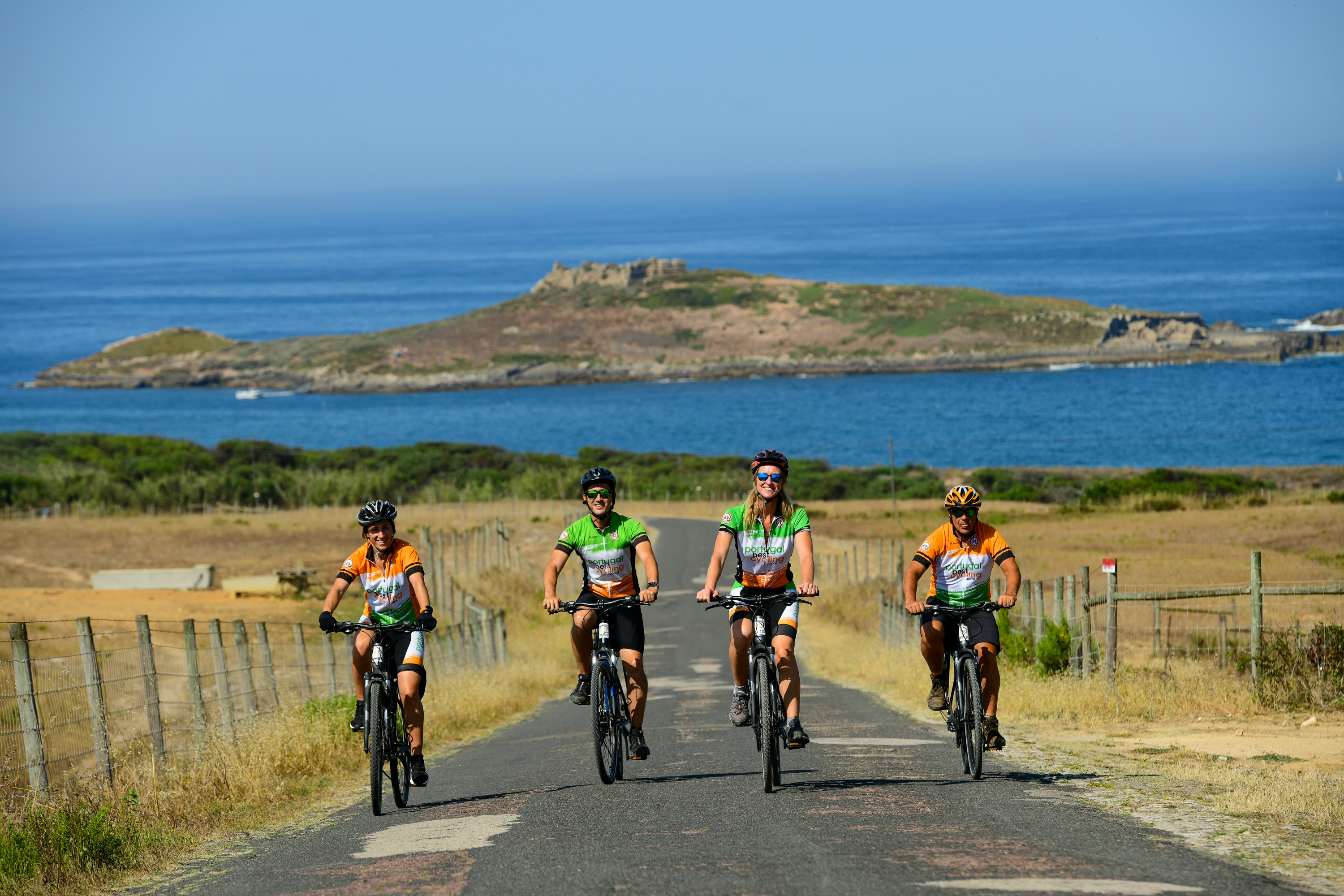 <Beginnen Sie mit der Eroberung der Burg von Aljezur und genießen Sie die schöne Aussicht auf das Dorf und seine gepflegten Gemüsegärten. Dann radeln Sie wieder an die Küste und besuchen eine Festung mit atemberaubendem Blick auf die Steilküste. Die perfekte Kulisse für die Verteidigung! Von hier aus können wir den „Nadelfelsen“ sehen, einen imposanten Felsen, der mitten im Meer steht. Wir fahren wieder ins Landesinnere und beginnen unser Abenteuer. Zuerst zwischen Eukalyptusbäumen, später zwischen wilden endemischen Sträuchern und schließlich entlang eines wunderschönen kleinen Sees und durch ein Tal. Völlig wild, überraschend und atemberaubend. Sie radeln nach Bordeira, einem hübschen Weiler mit einer Kirche im manuelinischen Stil, und fahren dann durch ein weiteres bezauberndes Tal bis Carrapateira. Hier werden Sie von der unglaublichen Aussicht und der rauen Küste überwältigt sein.