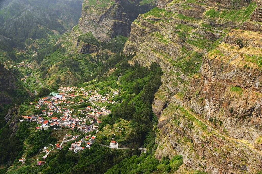 <Das versteckte Curral das Freiras – besser bekannt als Nonnental – verdankt seinen Namen einer Legende: Im 16. Jahrhundert sollen Nonnen vor einem Piratenüberfall in dieses abgelegene Tal geflohen sein. Heute wandern wir vom Aussichtspunkt Eira do Serrado auf einem serpentinenreichen Pfad hinab ins Tal und anschließend am gegenüberliegenden Hang wieder empor. Durch die überwältigende Bergwelt am Fuße des Pico Grande führt uns der Weg zu unserem Tagesziel – dem Aussichtspunkt Boca da Corrida. Dort erwartet uns ein atemberaubender Rundblick über das gesamte Nonnental und die umliegenden Bergketten. Bei klarer Sicht erhaschen wir sogar einen Blick bis zu den höchsten Gipfeln Madeiras, Pico do Arieiro und Pico Ruivo.