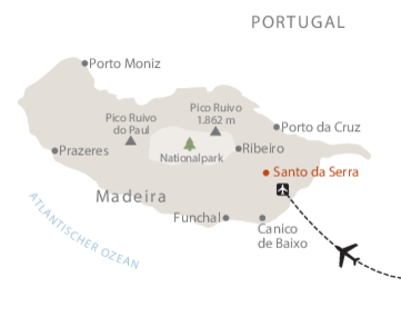 <Wir landen auf Madeira, wo uns ein ASI-Vertreter herzlich empfängt und zum Hotel begleitet. Der restliche Tag steht uns frei – eine gute Gelegenheit, erste Eindrücke zu sammeln, durch den Ort zu schlendern oder einfach zu entspannen. Unser ASI-Wanderführer begrüßt uns offiziell am nächsten Morgen (Tag 2).
