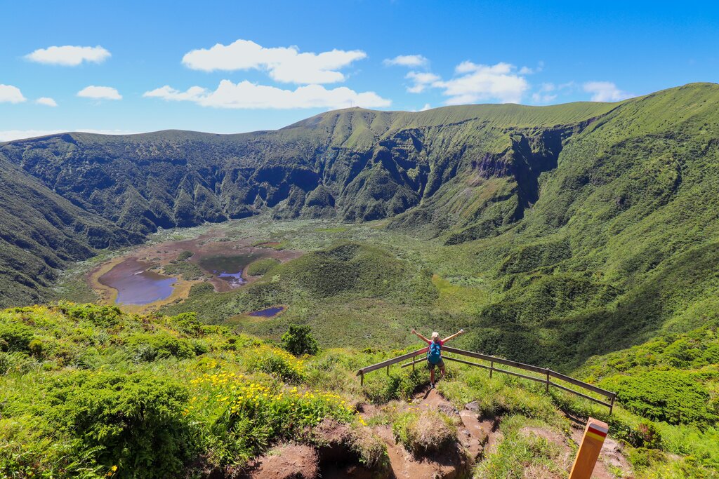 <Wir starten unsere Azorenreise mit einem „königlichen“ Blick vom Aussichtspunkt Vista do Rei auf die smaragd- und tiefblauen Kraterseen von Sete Cidades. Von hier wandern wir entlang des beeindruckenden Kraterrands hinunter in das idyllische Kraterdorf – ein landschaftliches Highlight. Nach einer gemütlichen Einkehr im Restaurant entdecken wir am Nachmittag die süße Seite der Insel: eine duftende Ananasplantage, die mit ihrer exotischen Atmosphäre begeistert.