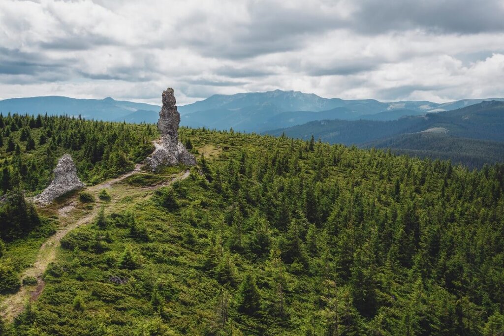 <Früh am Morgen fahren wir hinauf nach Păltiniș – auf 1.450 m, dem höchstgelegenen Kurort Rumäniens. Hier, am Rand des Cindrel-Gebirges, beginnt unsere heutige Tour. Wir wandern von Păltiniș über den Gipfel Oncesti (1.713 m) und weiter durch die dichten Wälder des Tomnaticu. Die klare Bergluft und die Ruhe begleiten uns, bis wir einen ganz besonderen Ort erreichen: die Wolfswiese. Auf dieser sagenumwobenen Lichtung, genannt Poiana Lupilor, fühlt es sich an, als könnten wir das ferne Heulen der Wölfe erahnen. In einem traditionellen Hirtendorf legen wir eine Pause ein und genießen ein Picknick mit lokalen Spezialitäten. Gestärkt und voller Eindrücke kehren wir am Nachmittag nach Rășinari zurück.