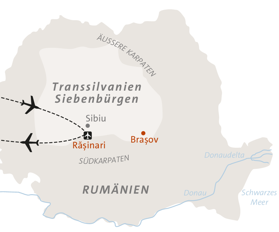 Du wirst am Flughafen Hermannstadt/Sibiu von einem Vertreter von ASI Reisen abgeholt: Da mit verschiedenen Fliegern angereist wird, fällt ggf. etwas Wartezeit an. Bitte achte auf das ASI-Willkommensschild mit unserem Logo als Erkennungszeichen.