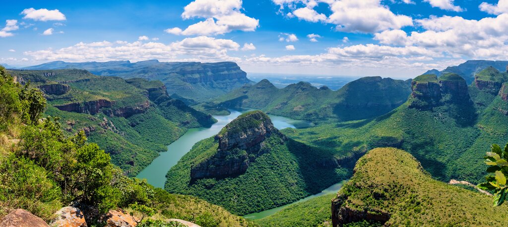 <Wir fahren zum beeindruckenden Blyde River Canyon, wo uns eine Wanderung durch die mächtige Schlucht erwartet. Vorbei an den markanten drei Rondavels tauchen wir ein in eine Landschaft voller seltener Pflanzen und spektakulärer Ausblicke. Danach besuchen wir die faszinierende Felsformation von Bourkes Luck Potholes, wo das Wasser tiefe, runde Becken in den Fels geformt hat. Am Nachmittag setzen wir unsere Reise fort in den Greater Kruger Park und erreichen das private Guernsey Wildreservat, wo wir die Nacht verbringen.