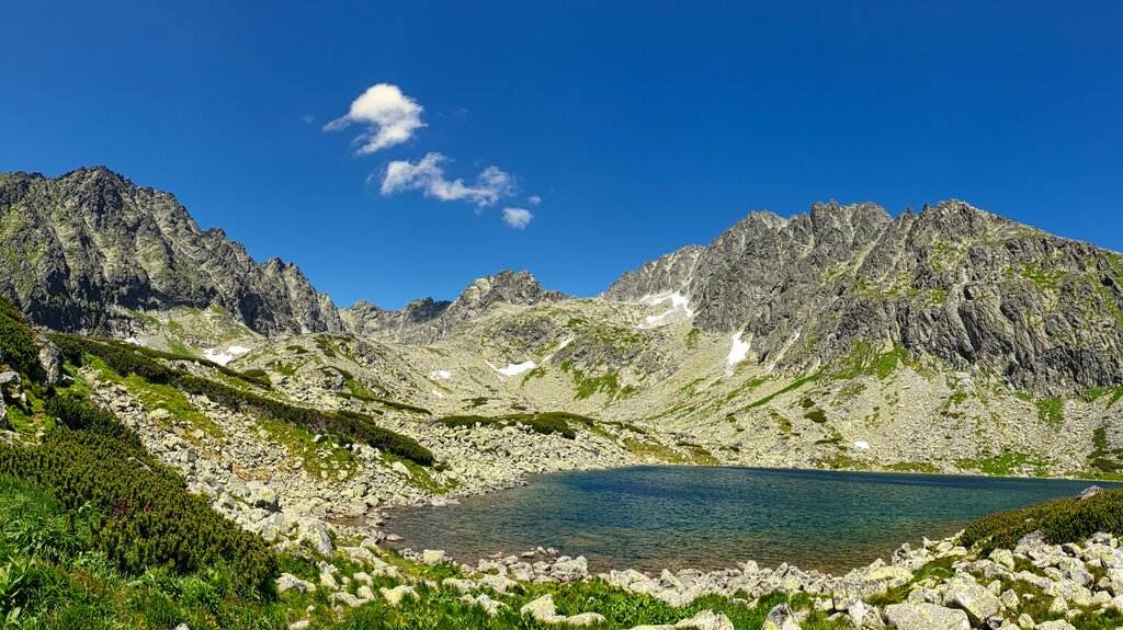 <Heute steht die erste Tour in der Hohen Tatra auf dem Programm. Unser Tagesziel ist die Berghütte am wunderschönen Bergsee Popradske pleso. Der Wanderweg führt entlang des Baches Koprovsky durch das beeindruckende Tal Koprova dolina. Über uns erhebt sich der Nationalberg der Slowakei - der mächtige Krivan. Über den oberen Koprovske Sattel auf 2100 m ü.M. gelangen wir zum Bergsee Hincovo pleso. Hier genießen wir das atemberaubende Panorama aus erhabenen Bergspitzen, mächtigen Felswänden und langgezogenen Tälern. Der letzte Abstieg führt uns zu unserer Unterkunft am Bergsee Popradske pleso. -