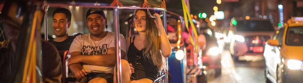 Begib dich auf eine epische Reise durch Thailand und lerne unterwegs viele neue Freunde kennen - die Inseln rufen! Auf diesem 15-tägigen Abenteuer erkundest du die Nachtmärkte und Bars in Bangkok, wanderst durch die Hügel außerhalb von Chiang Mai, jagst Wasserfälle und gehst vielleicht auf die Suche nach Elefanten. Du fährst Kajak und genießt die herrliche Natur, die du sonst nur von den Dörfern der Bergvölker aus siehst, und hast jede Menge Freizeit zum Schnorcheln, Schwimmen oder Ziplining. Mit einem einheimischen Führer, der über das nötige Insiderwissen verfügt, wanderst du, lernst etwas über Schildkröten, entspannst dich am Strand und gehst im Dschungel des Khao Sok Nationalparks auf Safari. Iss dein Gewicht in Nudeln, finde deine neuen Lieblingsorte im Nachtleben und beende das Ganze im quirligen Phuket mit einem knalligen Sonnenuntergang.