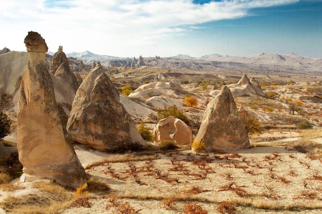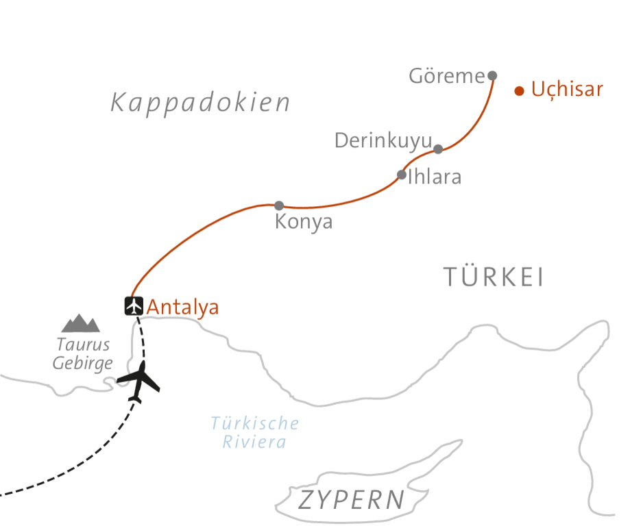 Im Herzen Anatoliens liegt die zu Stein gewordene Wunderwelt Kappadokien – eine Landschaft wie aus einem Traum geformt: konische Felsformationen, enge Schluchten, phantasievolle Türme und tiefe Höhlen. Im Grunde genommen wandern wir auf dem Boden eines großen Sees, dessen Wasser vor Tausenden von Jahren abfloss. Hier haben Menschen Höhlenwohnungen, Vorratskammern und Kirchen gebaut. Besonders beeindruckend ist die unterirdische Stadt Derinkuyu, die mehrere Stockwerke tief in den Boden gegraben wurde. Wir tauchen ein in diese Wunderwelt – Eindrücke, die wir nie vergessen werden!