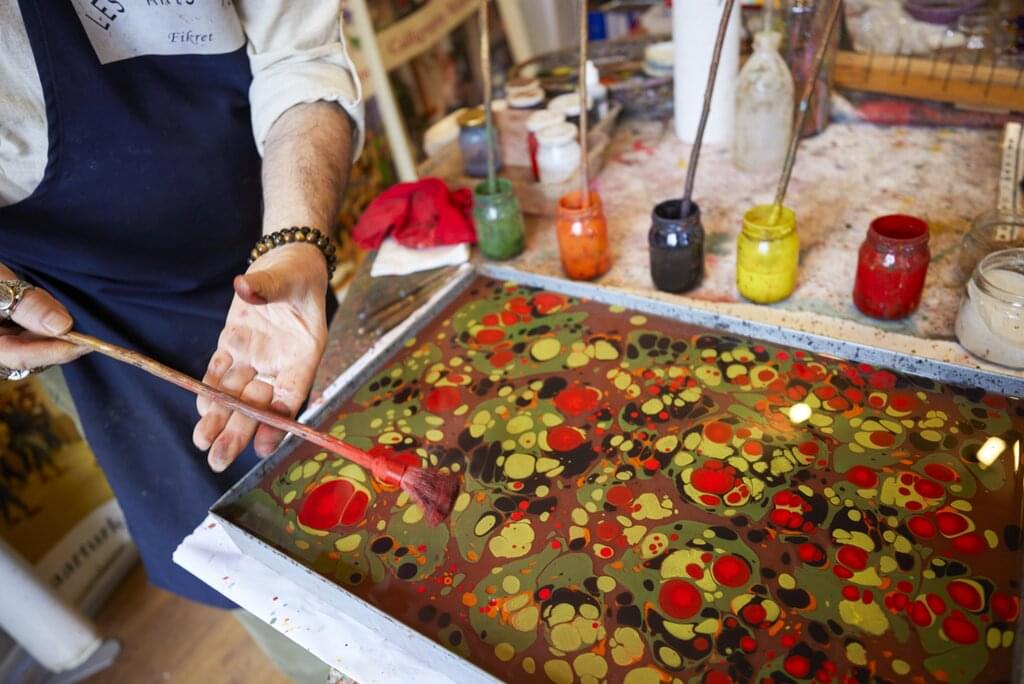 • Lerne die Kunst des Wassermarmorierens (Ebru) mit traditionellen Materialien wie Erdfarben, Rosshaar und Rosenzweigpinseln - du kannst dein eigenes Meisterwerk malen und mit nach Hause nehmen!
