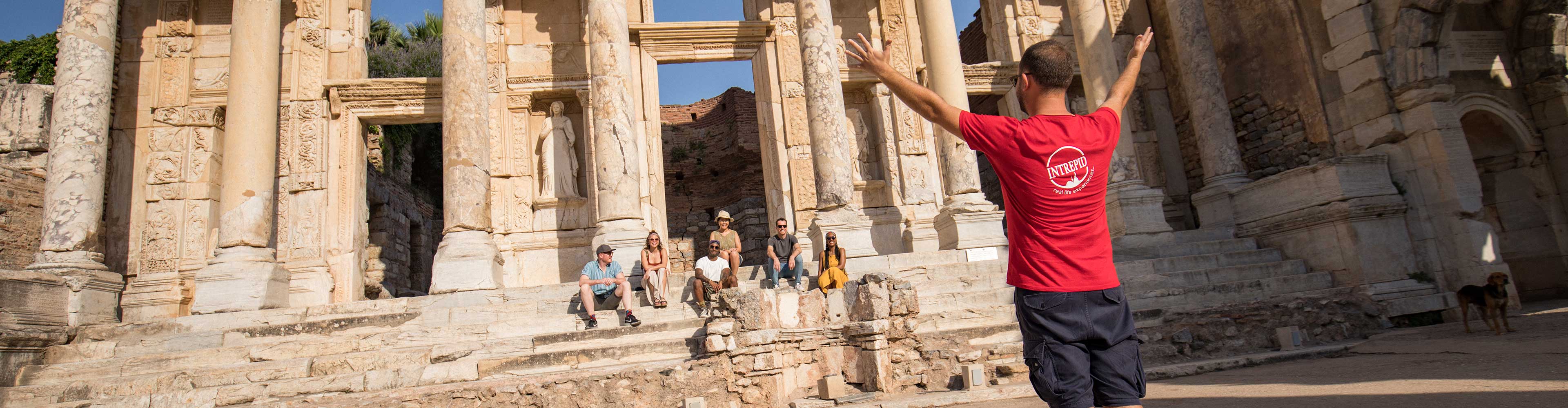 <Heute Morgen fährst du zur antiken Stadt Troja. Erkunde die Ruinen mit deinem Reiseleiter, mach ein Foto mit einer Nachbildung des Trojanischen Pferdes und erfahre, wie dieser Ort Historiker und Archäologen seit Jahrhunderten verwirrt. Anschließend fährst du weiter nach Selcuk, das an den Hängen des Ayasoluk-Hügels liegt. Begib dich mit deinem Reiseleiter auf einen Orientierungsspaziergang, vorbei an der Isa Bey Moschee und der imposanten byzantinischen Zitadelle der Großen Festung. Danach hast du etwas Freizeit.