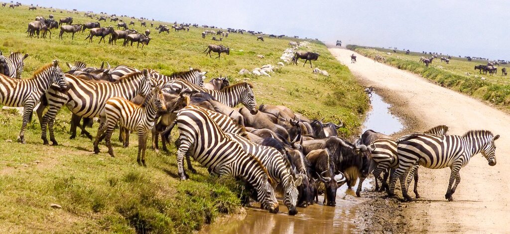 <Nach dem Frühstück steht ein Rundgang über die Farm an. Noch mehr über Land und Leute, insbesondere über die Sozialarbeit, erfährst du im Mwema Street Children Center in Karatu - ein Zufluchtsort für Straßenkinder. Es folgt die Fahrt in das berühmteste Wildgebiet Afrikas: die Serengeti mit endlosen Savannen und riesigen Wildtierherden. Vor der Ankunft im Serengeti-Nationalpark gibt es einen Fotostopp am Ngorongoro-Krater.