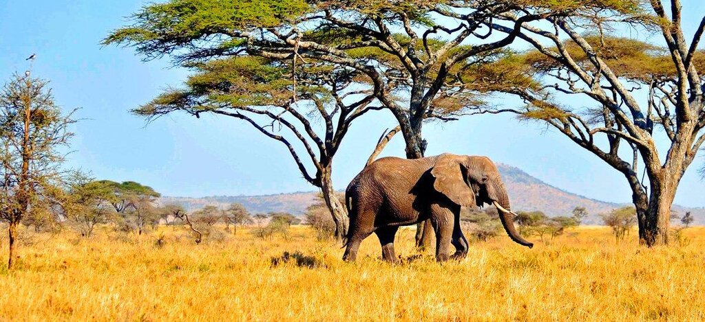 <Dein heutiges Ziel ist das berühmteste Wildgebiet Afrikas mit endlosen Savannen und riesigen Wildtierherden: die Serengeti. Der gleichnamige Nationalpark ist UNESCO-Weltnaturerbe. Du wirst viele Chancen für ausgiebige Tierbeobachtungen haben. Unterwegs ein kurzer Fototermin am Rand des Ngorongoro-Kraters. Dann hast du Zeit, die atemberaubende Landschaft der Serengeti und die Erlebnisse des Tages, noch einmal unter dem Sternenhimmel Revue passieren zu lassen.