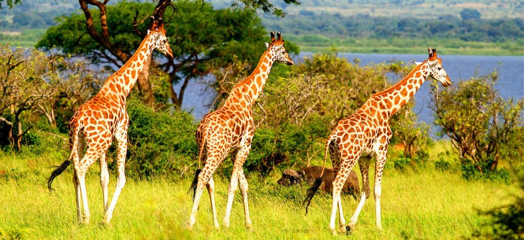 <Heute geht die Safari in Ugandas größtes Schutzgebiet: der Murchison-Falls-Nationalpark. Der Nil teilt den Park in zwei Teile. Obwohl das Gebiet südlich des Flusses weitaus größer ist, leben die meisten Tiere in der hügeligen Savannenlandschaft im Norden. Hier gehst du im Geländewagen auf die Suche nach Elefanten, Büffeln und Löwen. Auch Rothschild-Giraffen und Uganda-Kob-Antilopen leben in großen Populationen hier. Am Nachmittag kannst du dir das Ganze noch einmal vom Wasser aus ansehen: Im Boot geht es über den Nil auf einen Besuch bei Flusspferden und Nilkrokodilen. Ob zu Land oder auf dem Wasser: Untermalt wird dein Besuch mit Arien von mehr als 450 Vogelarten.
