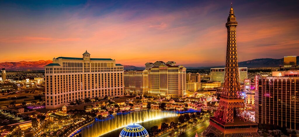 <Willkommen in den USA und Las Vegas – in der Stadt, die niemals schläft. Lass dich begeistern von all den Lichtern, Hotels und Casinos. Deine Reiseleitung wartet am Flughafen auf dich und fährt dich zu deinem Hotel. Nun kannst du die Beine hochlegen oder auf eigene Faust die Stadt erkunden. Vielleicht hast du Lust, dir die berühmte Lichtshow des Springbrunnens vor dem Hotel Bellagio anzuschauen oder möchtest du einfach nur den Strip – die Hauptstraße Las Vegas – entlang spazieren? Oder du schaust in eins der zahlreichen Casinos rein und versuchst dein Glück. Besonders beeindruckend ist Las Vegas übrigens bei Nacht.