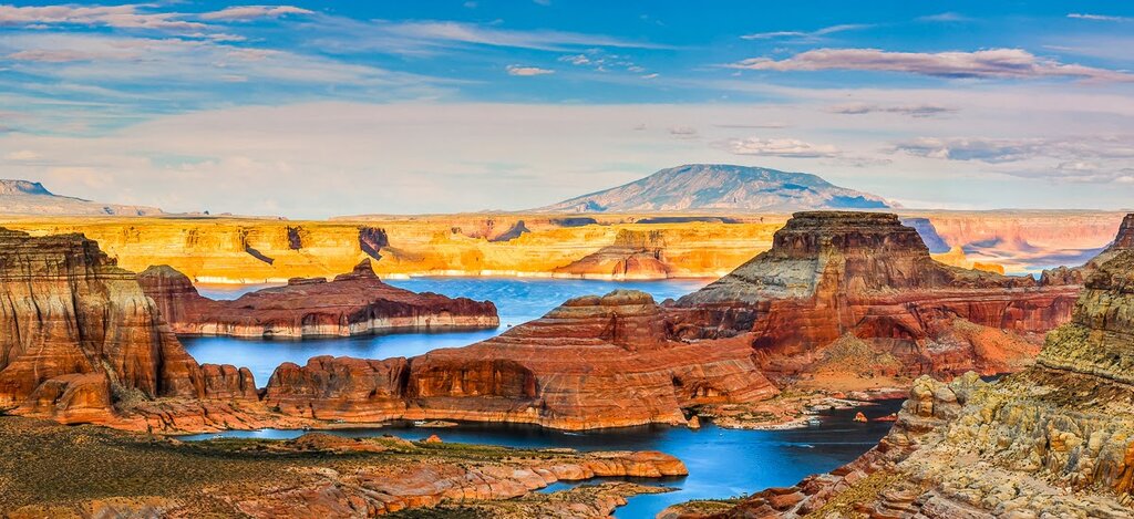 <Du hast hoffentlich gut geschlafen, denn nun beginnt deine Reise durch die wunderschönen Nationalparks der USA. Wir beginnen mit dem Death-Valley-Nationalpark. Hier triffst du auf extreme Witterungsbedingungen und Temperaturen. Im Sommer können sie bis auf 50 °C klettern. Zudem ist Death Valley, in einem Grabenbruch liegend, der am tiefsten liegende Ort der westlichen Hemisphäre mit etwa 100 Metern unter dem Meeresspiegel. Wir erkunden die goldenen Sanddünen, die sich scharf von den kahlen braunen und schwarzen Berghängen abheben, Badwater mit seinen giftigen Quellen, den von Salzablagerungen gebildeten Devil’s Golf Course und die farbenprächtigen Felsgebilde am Zabriskie Point. Zum Mittagessen besuchen wir Furnace Creek. Am Nachmittag fahren wir weiter nach Lone Pine unterhalb des Mount Whitney (4421 m), dem höchsten Gipfel der kontinentalen Vereinigten Staaten. Danach hast du Zeit zum Ausruhen und Erfrischen, bevor wir in die Alabama Hills aufbrechen, die seit langem ein beliebtes Drehort für Western von Hollywood sind.