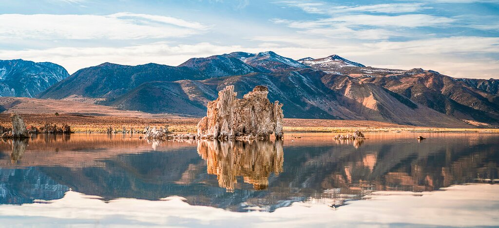 <Heute tauchst du in das Ökosystem der Eastern Sierra ein. Unser erster Besuch gilt dem Laws Railroad Museum. Historische Hütten, Werkstätten und Häuser zeugen von den Bemühungen der Europäer, dieses abgelegene Bergtal zu besiedeln. Anschließend erkunden wir den Mono Lake, einen salzhaltigen Sodasee, der mit über einer Million Jahren zu den ältesten Seen Nordamerikas zählt. Der See ist von aktiven Vulkankegeln umgeben, deren letzter Ausbruch vor 350 Jahren erfolgte. Das gesamte Gebiet ist Teil der Long Valley Caldera, einem Hotspot aus Magma in der Erdkruste. Je nach Schneelage wandern wir durch die bezaubernden Jeffrey-Kiefern- und Espenwälder und anschließend an Wasserfällen vorbei zum Crystal Lake. Gegen Gebühr können wir mit der Gondel auf den 3700 m hohen Mammoth Peak fahren und einen atemberaubenden Blick auf die zerklüfteten Gipfel der Sierra Nevada genießen. Außerdem besteht die Möglichkeit, eine lokale heiße Quelle zu besuchen (Eintritt kostenpflichtig).