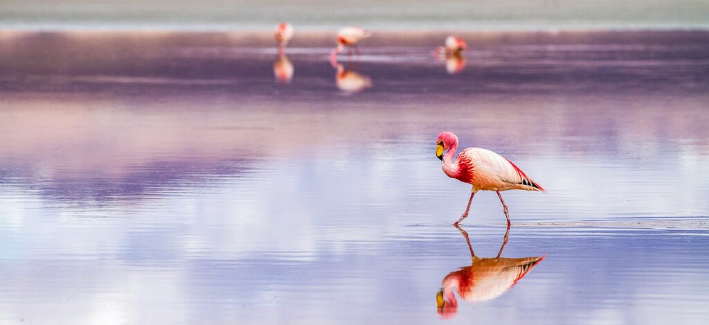 Wo Lama und Alpaka sich »Gute Nacht« sagen, kommst du erst nach ein paar Tagen vorbei. Da hast du schon die Nebelberge der Anden und die ersten Inka-Wunder intus. Und du hast dich in der weißen Welterbe-Stadt auf 2.700 Metern in das Web- und Schokoladenhandwerk verliebt. Dabei geht es noch bis auf 4.000 Meter hinauf, wo nichts halluziniert ist: weder die roten und grünen Lagunenwunder, noch die Flamingos und auch nicht die Dalí-Pampa. Der Rest? Pure Magie! Von der Uyuni-Salzwüste bis zu den Inka-Legenden, die auf der Sonneninsel im Titicaca-See geboren wurden.