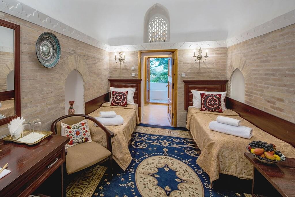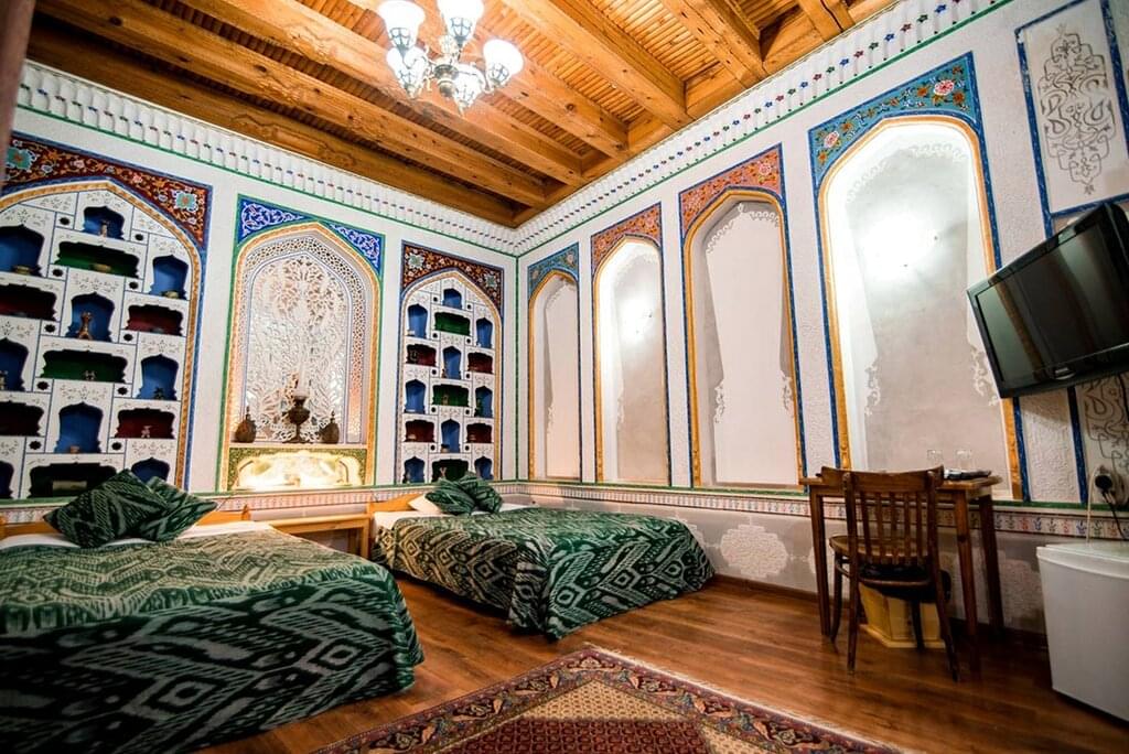 <Heute Morgen fährst du mit einem Hochgeschwindigkeitszug in die heilige und historische Stadt Buchara. Die von der UNESCO zum Weltkulturerbe erklärte Stadt Buchara gilt als die heiligste Stadt Zentralasiens und beherbergt Monumente aus dem 8. bis 18. Nach deiner Ankunft besichtigst du mit deinem Reiseleiter einige der Stätten. Mach dich auf den Weg, um einige der Monumente zu besichtigen - die sorgfältige Restaurierung vieler Mosaik- und Majolika-Dekorationen gibt dir einen Eindruck davon, wie diese Gebäude in ihrer ursprünglichen Pracht aussahen. Besuche das Ismail Samani Mausoleum, das Chashma Ayub Mausoleum und die Bolo-Khauz Moschee. Danach machst du dich auf den Weg zu deinem Feature Stay in einem umgebauten jüdischen Haus. Diese historischen und authentischen Häuser sind interessant dekoriert und es gibt hier viel zu entdecken. Heute Abend kannst du in einem lokalen Restaurant zu Abend essen und anschließend eine usbekische Folklore- und Musikaufführung in einem der Madrasses der Stadt genießen.