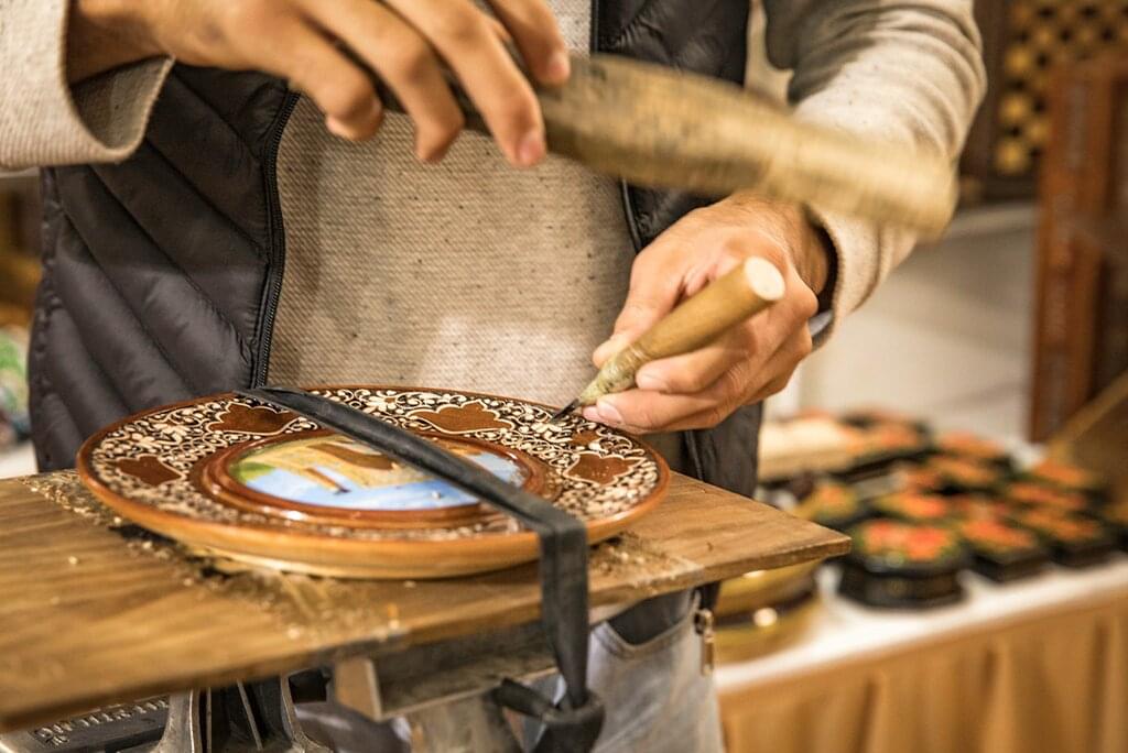 <Heute Morgen fährst du mit dem Hochgeschwindigkeitszug Afrosiab in das alte Zentrum der Seidenstraße, Samarkand. Die Stadt war lange Zeit ein Zentrum für Kunsthandwerker und Händler sowie die Beute vieler Eroberungsarmeen und hat eine reiche und komplexe Geschichte hinterlassen. Wenn du ankommst, halte an den prächtigen Überresten des Ulugbek-Observatoriums an - es wurde von einem muslimischen Prinzen erbaut und dein Reiseleiter wird dir erklären, warum dieser unbeliebte Herrscher eine umstrittene Leidenschaft für Astronomie hatte. Danach erkundest du das Afrosiab-Museum, in dem sich ein wertvolles Fresko des Sogdischen Königs Varkhouman aus dem 7. Dann besuchst du die Werkstatt eines lokalen Kunsthandwerkers in Konigil und erfährst, wie einer der wenigen Menschen in Zentralasien noch immer Papier nach einer 1000 Jahre alten Methode herstellt. In diesem Dorf befindet sich die Papierfabrik Meros, die von den bekannten Meistern, den Brüdern Mukhtarov, gegründet wurde. Dank ihrer Bemühungen hat die örtliche Fabrik eine alte Tradition wiederbelebt, die auf alten Technologien aus Samarkand basiert. Du wirst auch eine Keramikwerkstatt besichtigen und hast dann einen freien Abend, um Samarkand auf eigene Faust zu erkunden.