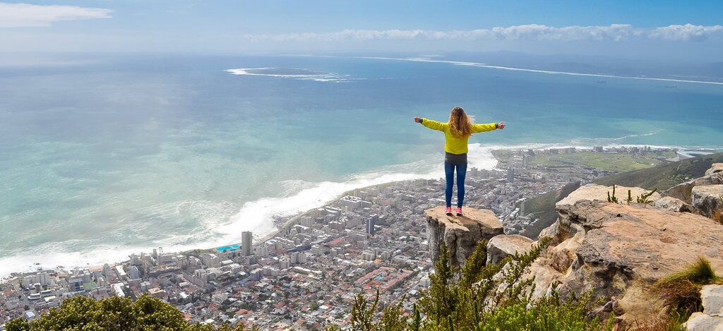 <Nach der Landung in der Mother City Südafrikas erwartet dich deine Reiseleitung schon gespannt und begrüßt dich bei deiner Ankunft am Flughafen von Kapstadt. Erfrische dich kurz in deiner Unterkunft. Auf einer Erkundungstour besuchst du unter anderem das farbenfrohe Kap-Malaien-Viertel und schlenderst durch den Company’s Garden. Vom Signal Hill aus hast du einen herrlichen Blick auf die Stadt, den Atlantik und den Tafelberg. Die Rundfahrt endet an der V&A Waterfront, und du hast ein wenig Zeit, um den alten Hafen mit seinen Flohmärkten, Restaurants und dem riesigen Aquarium zu erkunden.