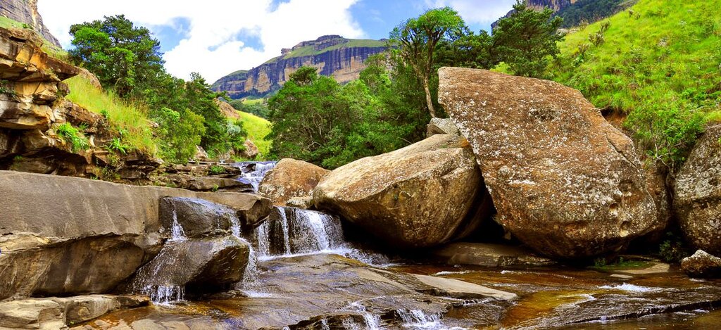 <Heute brichst du in Richtung der berühmten Panorama Route auf. Auftakt ist ein Spaziergang am Rand des Blyde-River-Canyons mit seiner 800 Meter tiefen Schlucht und Blick auf die Bergkuppen der Three Rondavels. Dann geht’s weiter zu den Bourke’s Luck Potholes, bizarre zylinderförmige Felslöcher, die die Strudel des Flusses in den Stein geschraubt haben. Am God’s Window eröffnet sich eine grandiose Aussicht über das weite Lowveld bis zum Krüger-Nationalpark. Dann spazierst du ein kleines Stück durch den immergrünen Regenwald. In der Nähe der Lisbon-Fälle lassen wir den Reiseminibus stehen und laufen das letzte Stück zu den höchsten Wasserfällen Mpumalangas. Kaffeepause in der Künstlerstadt White River im Sabie Valley Coffee mit einer Tasse vollmundigen Arabica-Kaffees und köstlichem Schokokuchen. Ein Mitglied der Familie Buckland verrät dir Details über den Anbau und die Verarbeitung der edlen Bohnen. Dein heutiges Quartier liegt im privaten Marloth-Naturreservat, direkt am Krügerpark.