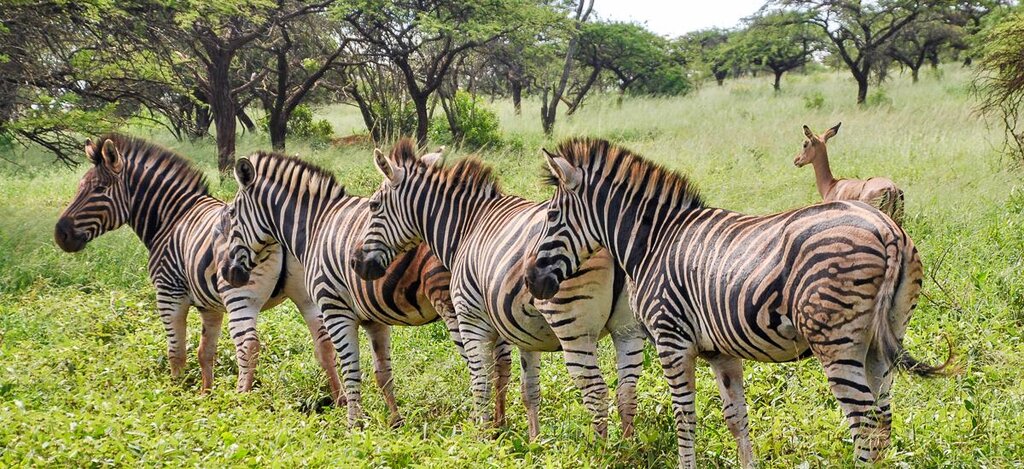 <»Die Wildnis Südafrikas« ist das Motto des Tages. Frühmorgens startest du gemeinsam mit deiner Reiseleitung und einer Safariführerin oder einem Safariführer zur ganztägigen Safari. Im offenen Geländewagen streifst du durch die Savanne und das Bergbuschfeld des südlichen Krüger-Nationalparks. Mit etwas Glück begegnen dir neben Gnus, Zebras, Impalas und Warzenschweinen auch die Big Five: Elefant, Nashorn, Büffel, Löwe und Leopard. Am Crocodile River, dem Grenzfluss zum Krügerpark, siehst du alle Bewohner des Nationalparks, die zum Trinken an den Fluss kommen, mit einem Quäntchen Glück auch Elefanten. Vor dem Abendessen begibst du dich für etwa 1 ½ Stunden auf einen Spaziergang über das Lodgegelände, um Antilopen, Giraffen und Zebras zu entdecken.