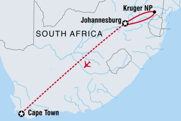 Erlebe ein unglaubliches afrikanisches Abenteuer auf dieser Reise vom Krüger-Nationalpark nach Kapstadt. Erlebe den Nervenkitzel, wenn du auf einer Safari zum ersten Mal einen (oder mehrere) der Big Five Afrikas siehst, höre das Trompeten der Elefanten über die Ebenen und lerne auf einer geführten Wanderung mehr über das einzigartige Ökosystem des Parks. Besuche das geschäftige Joburg - eine Stadt, in der Villen und Barackensiedlungen nebeneinander stehen - bevor du in die schicken Straßen von Kapstadt reist, um etwas über die dramatische Vergangenheit der Stadt zu erfahren. Tauche ein in die Kultur, Schönheit und Geschichte dieser erstaunlichen Region und probiere unterwegs ein paar Gläser Wein aus der Region.